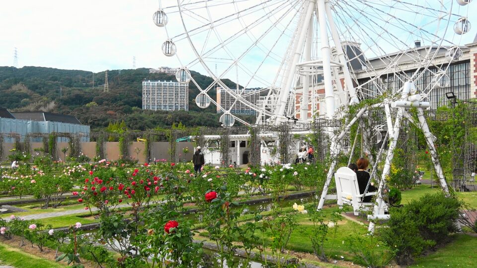 白い観覧車と薔薇園に