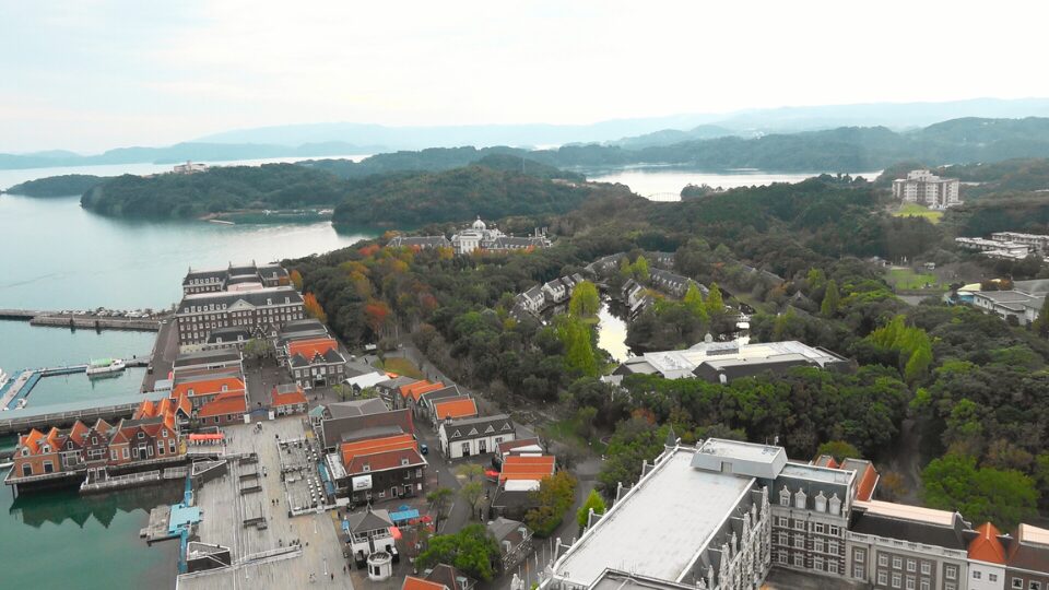 ハウステンボスのシンボル、どのエリアからも見えます。地上80mの展望室からは大村湾を見渡せるので、ゆっくり背景を眺めながら寛ぐことができます。