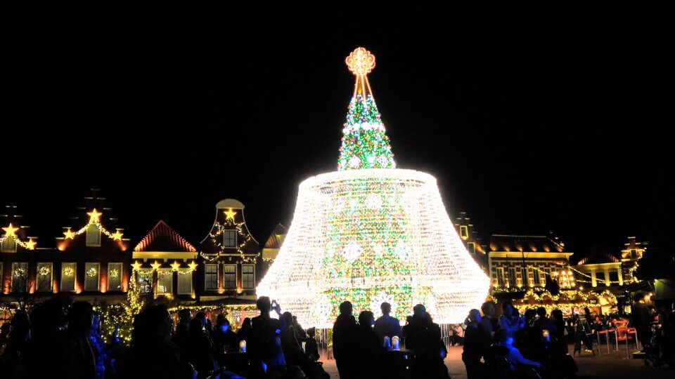 ハウステンボスでしか見ることのできない 日本初のグランド・シャンデリアツリー(メロディー・オブ・クリスマスショー)心がときめく美しさ、ハウステンボスで迎えるクリスマスは最高の夜に 。