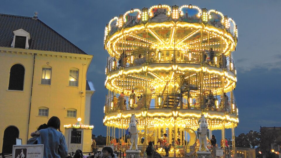 夜のメリーゴーランドは、ライトアップされ幻想的で輝いた光景がとてもステキです!