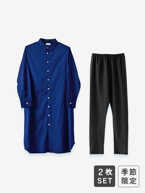 季節限定のコラボシャツワンピース綿ちぢみレギンス(ブラック)付のおしゃれな一着。